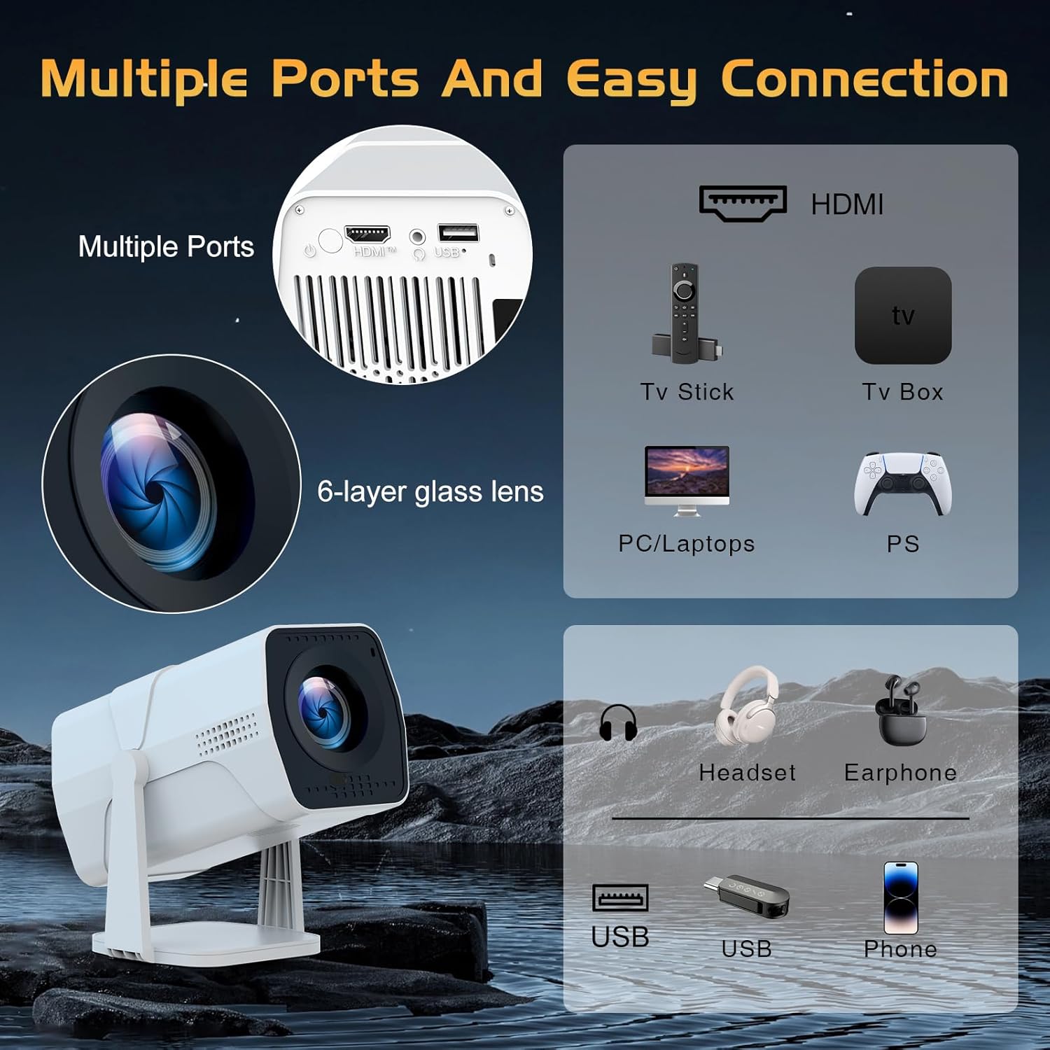 【Upgraded WiFi 6 Connectivity】Stay ahead with cutting-edge WiFi 6 technology in this Netflix-ready home movie projector. Enjoy movies and videos without buffering, faster speeds than standard projectors, and rock-solid stability for smoother online content playback.