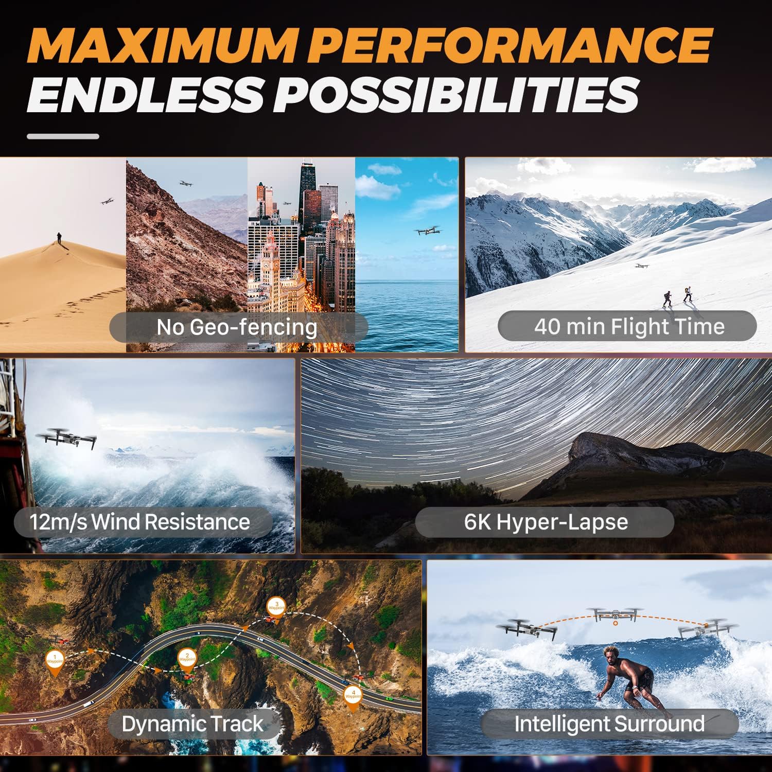 🏆【MAXIMUM PERFORMANCE OFFERS ENDLESS POSSIBILITIES】Omnidirectional obstacle avoidance with 12 visual sensors equipped with 19 groups of sensors offers 360° obstacle avoidance, pathing through complex terrain safely in real time. 40min long flight time & 27mph maximum wind resistance makes sure it can fly in virtually any wind condition with confidence, ensuring a successful flying mission.