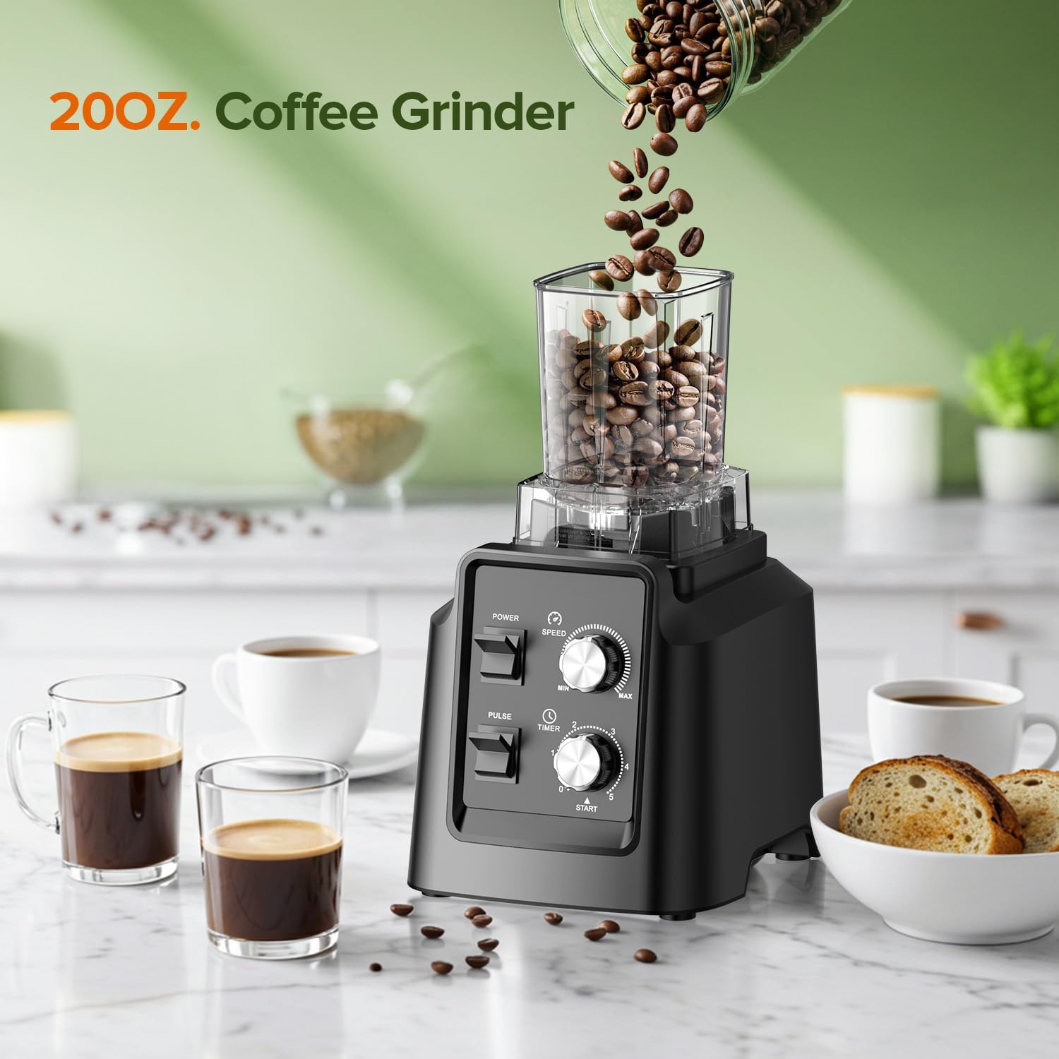 【Hassle-Free Cleaning & 2-in-1 Versatility】 – Daily cleanup takes 60 seconds with the self-cleaning function. The main 68oz BPA-free jar is top-rack dishwasher safe. Plus, the separate 20oz grinder handles coffee and spices without cross-flavor.