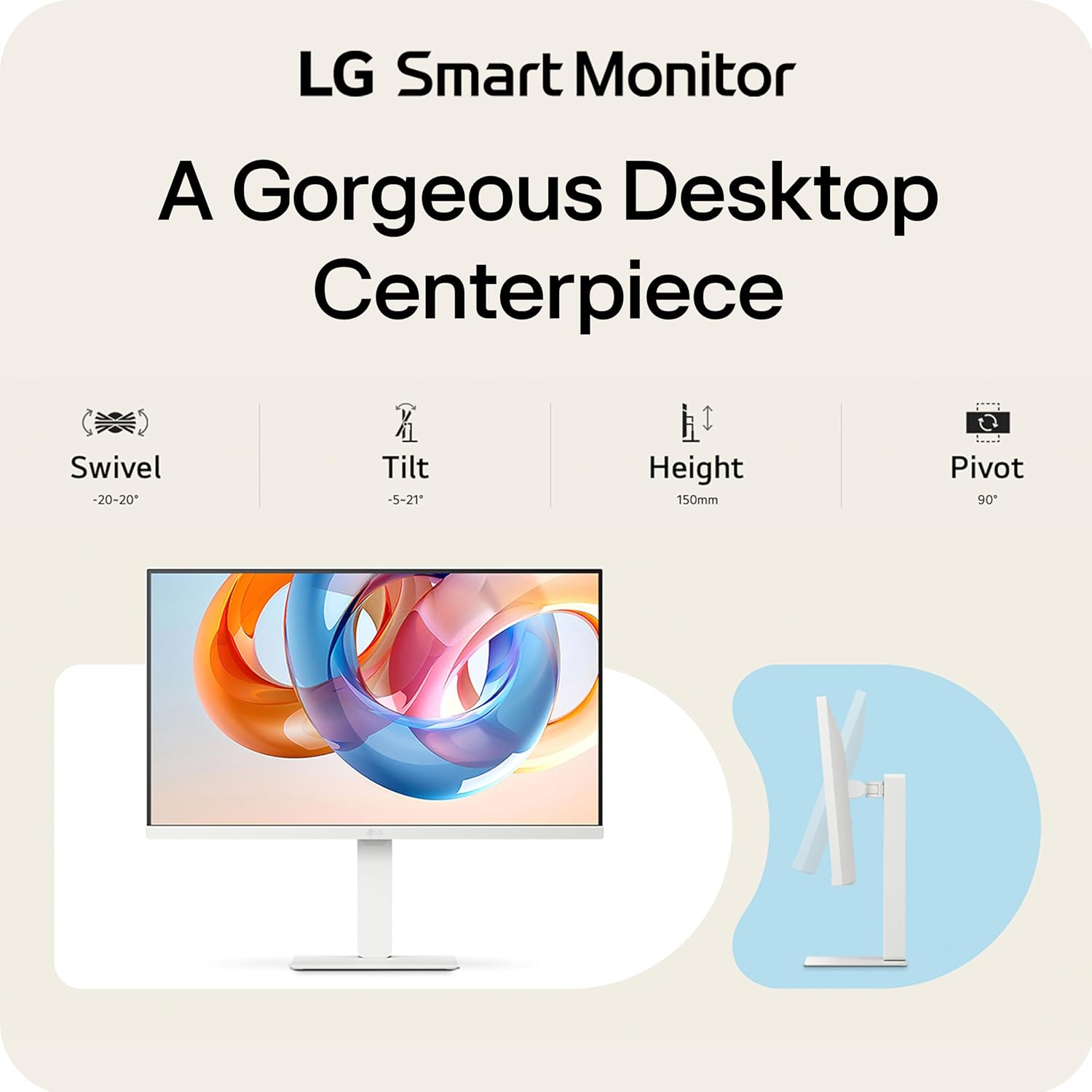 A little silly but I will admit that I purchased this monitor mostly for its aesthetic. The color paired perfectly with a Mac Mini. I was appalled by the monitors on offer from Apple, but I really wanted something to “match” my Mac mini. For the price however I feel this is an adequate monitor for casual use such as my scenario. Its colors are bright and clear.Text is easily viewable. The included stand adjusts to great angles. The viewing angles on the monitor itself are also Great. The 4k resolution is nice. If You’re looking for gaming purposes However this monitor is only 60Hz so you would be better off looking elsewhere. The WebOS features basically make this a smart tv which is nice. When you turn it on it has its own menu and WiFi that supports Netflix, Hulu etc. It does come with a remote and built in speakersas well so perfect if you’re using it in a bedroom. Overall happy with it and worth buying if you keep your expectations in check and need a chic white monitor.