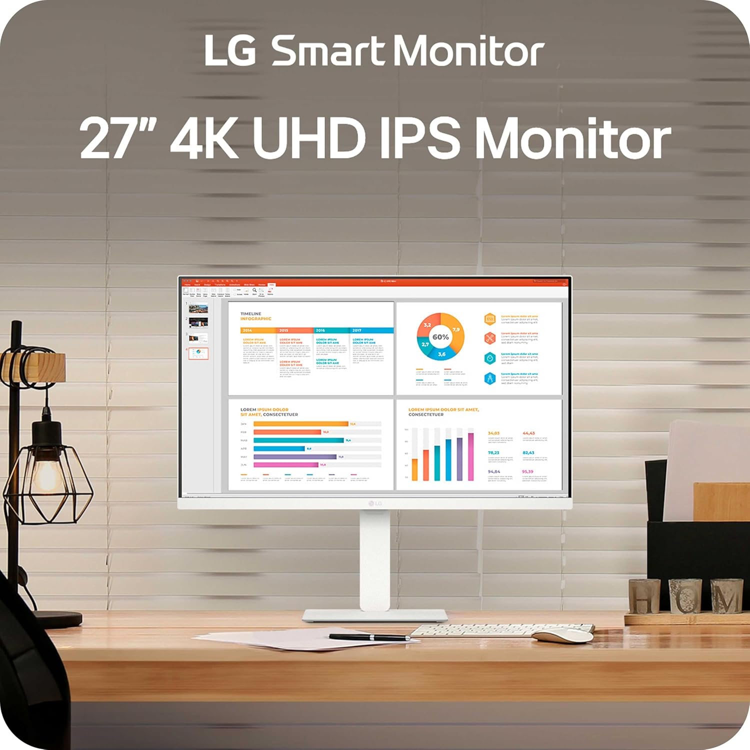 LG 27U730SA-W 27-Inch Smart 4K UHD (3840 x 2160) IPS Computer Monitor, HDR10, Built-in Speaker, Screen Share, Bluetooth, Remote Control, HDMI, USB Type-C PD 65W, Tilt/Height/Swivel/Pivot Stand, White