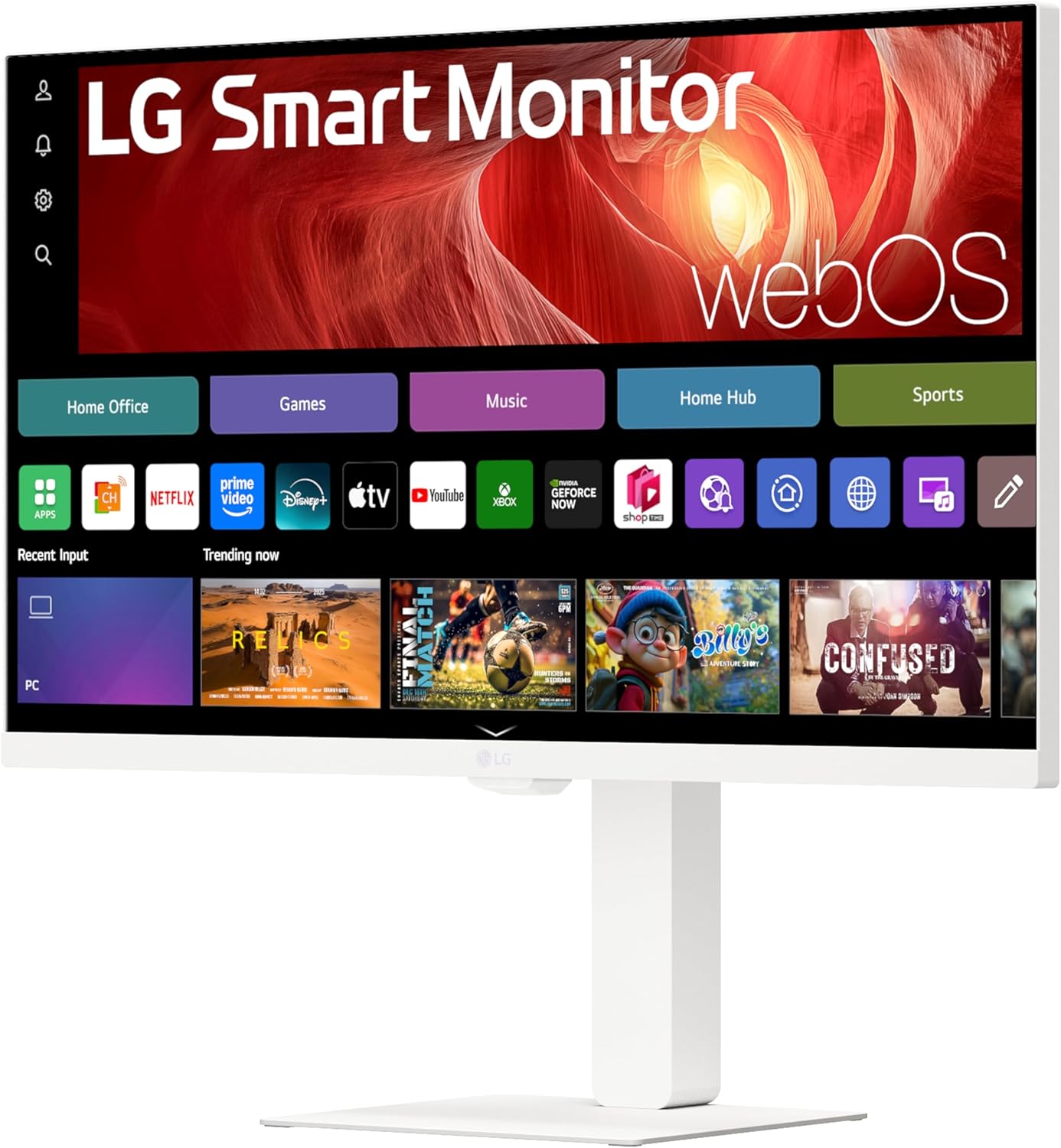 The LG Smart Monitor Swing (27U730SA) is a 27-inch 4K UHD smart monitor, delivering a stunning 3840 x 2160 resolution with HDR10 support for vibrant colors, exceptional contrast, and impeccable color. The 178-degree viewing angle ensures sharp details from virtually any perspective. ¹Internet connection and subscriptions to streaming services are required. Amazon, Prime Video and all related logos are trademarks of Amazon.com, Inc. or its affiliates. Amazon Prime membership and/or Prime Video fees apply. See primevideo.com/terms for details. HBO Max 2023 Warner Media, LLC. All Rights Reserved. HBO Max is used under license. Number of LG Channels subject to change.