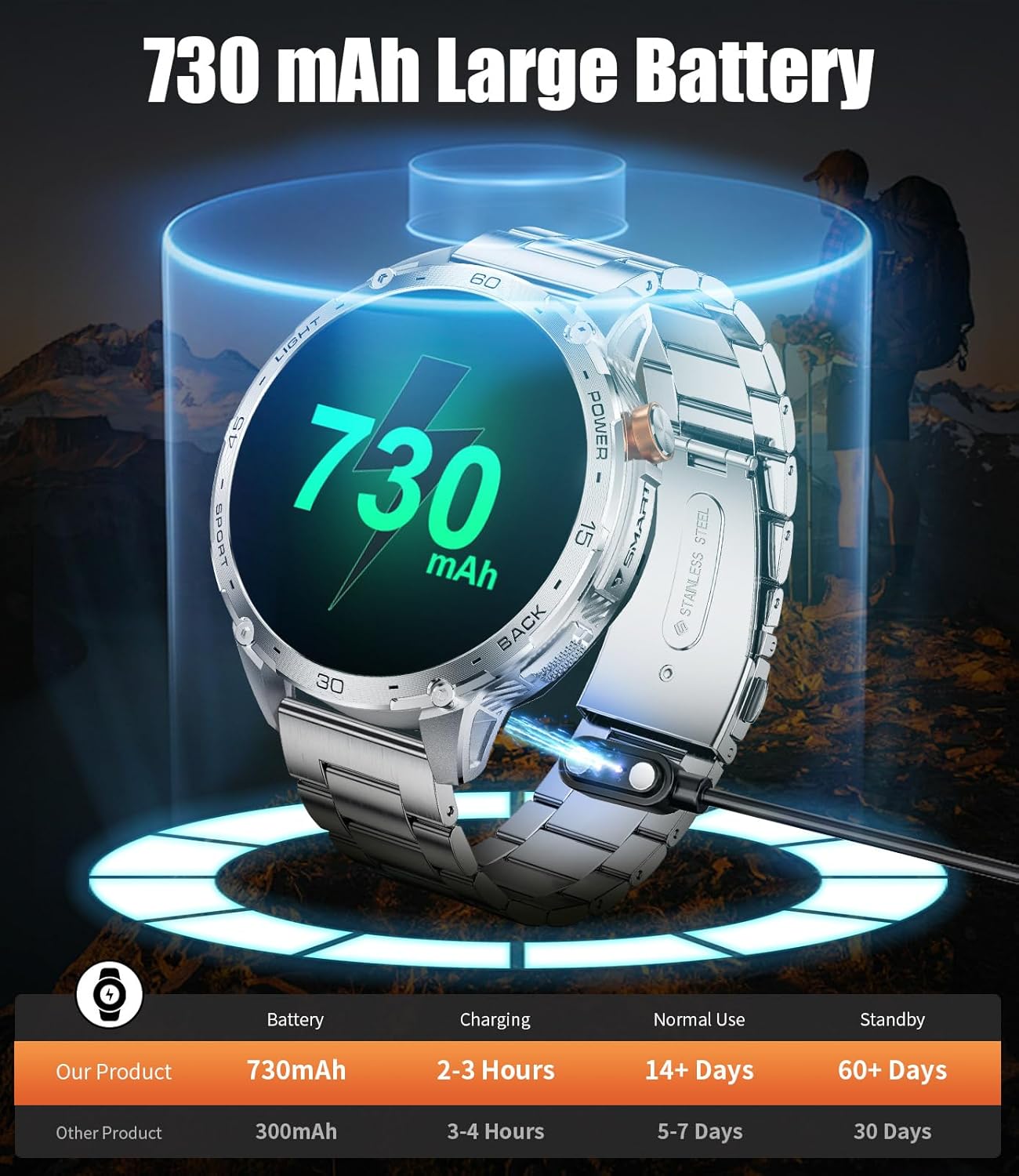 【BIG BATTERY 730 mAh & IP68 WATERPROOF】: Battery standby time is up to 35 days, working time is 7-12 days, easy to handle long-distance travel or daily use, eliminating charging troubles. Meanwhile, the IP68 waterproof makes you fearless of the challenges brought by swimming (please do not immerse in seawater or hot water).