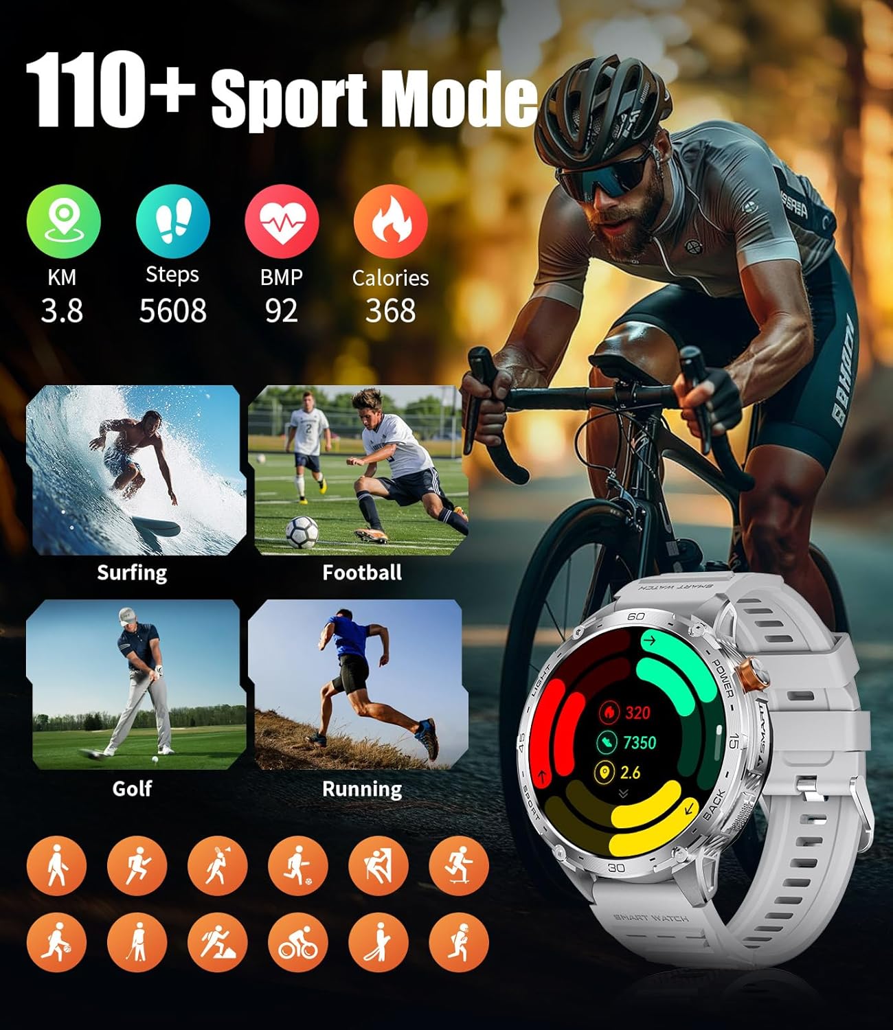 【BLUETOOTH CALLS & APP NOTIFICATIONS】:This mens smart watch supports Bluetooth calls, you can manage incoming calls directly on your wrist, including answering and rejecting. Meanwhile, the watch can receive notifications from apps such as WhatsApp, Instagram and Facebook, ensuring you don’t miss any important moments.