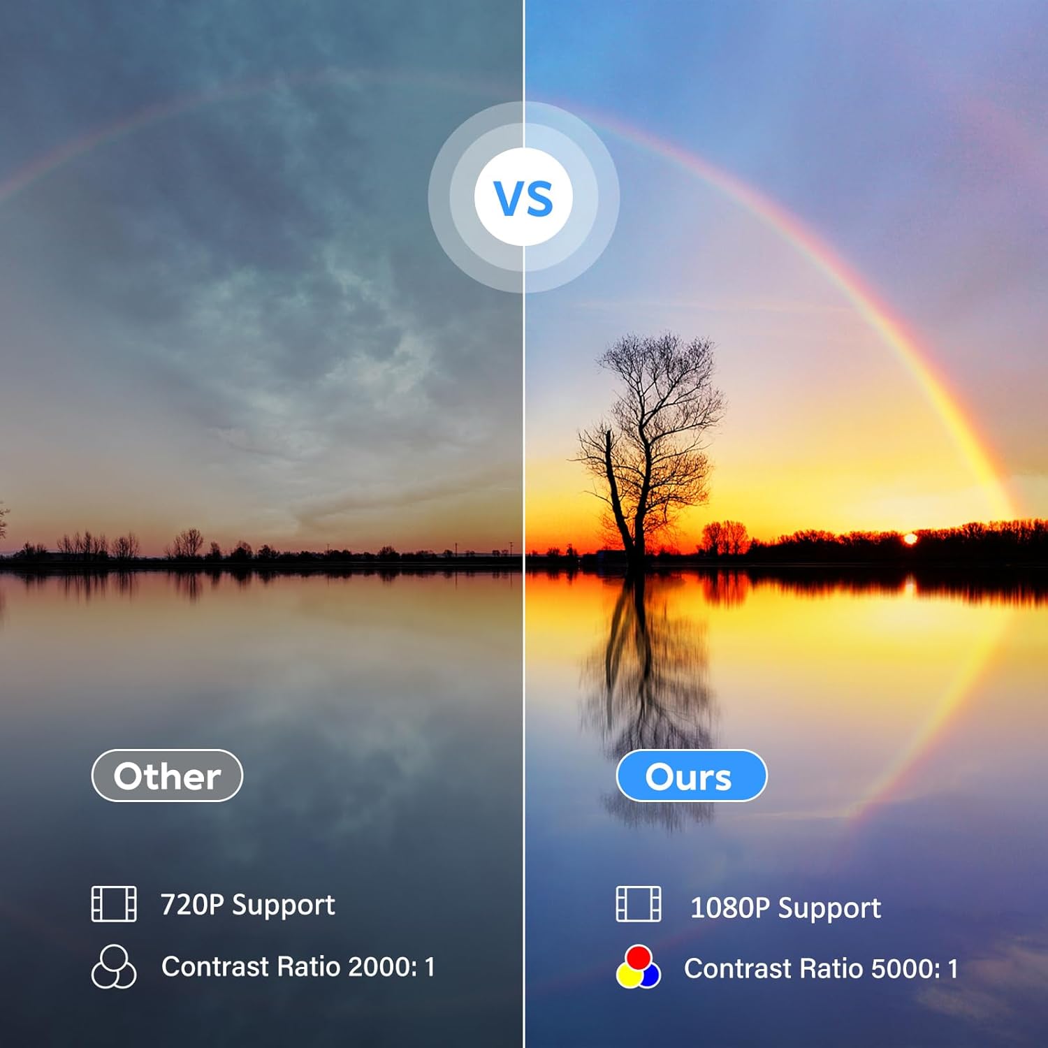 【Enjoy Clearer & Brighter Image Quality】To better meet our customer’s needs, we have upgraded the home projector with our latest LED light source. The small projector features a native 720P resolution with 1080P Full HD support, brings you sharper and brighter visuals and helps to reduce your eyestrain at the same time. Just immerse yourself in weekend movie nights with our projector