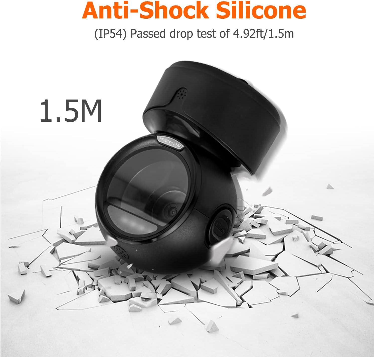 ➽【Non-slip Base and Anti-shock Design】Our Handsfree Omnidirectional Barcode Scanner can be directly placed on the desk, the anti-slip base makes it more stable, Built-in anti-vibration system can avoid damage while falling from the height of 4.92 feet. IP54 technology protects the wireless barcode scanner from dust.