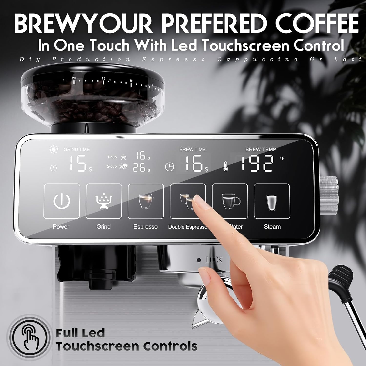 【Full Touchscreen Control Panel & Instant Heat System】:The intuitive touchscreen coffee maker interface lets you easily control grind time, shot time, brew temperature, and more. The upgraded thermoblock instant heating system heats water rapidly for faster brewing—no long waiting between shots.