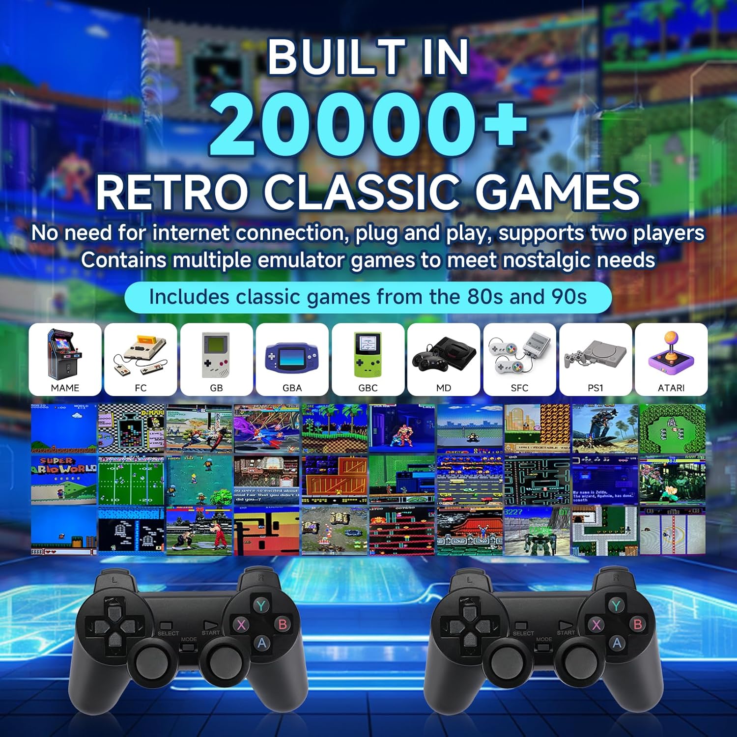 Retro Gaming Console Retro Plug and Play for 90s Old Arcade Classic Video Games tv Stick Over 20000 2.4g Wireless Controller Gamepad x2 128GB