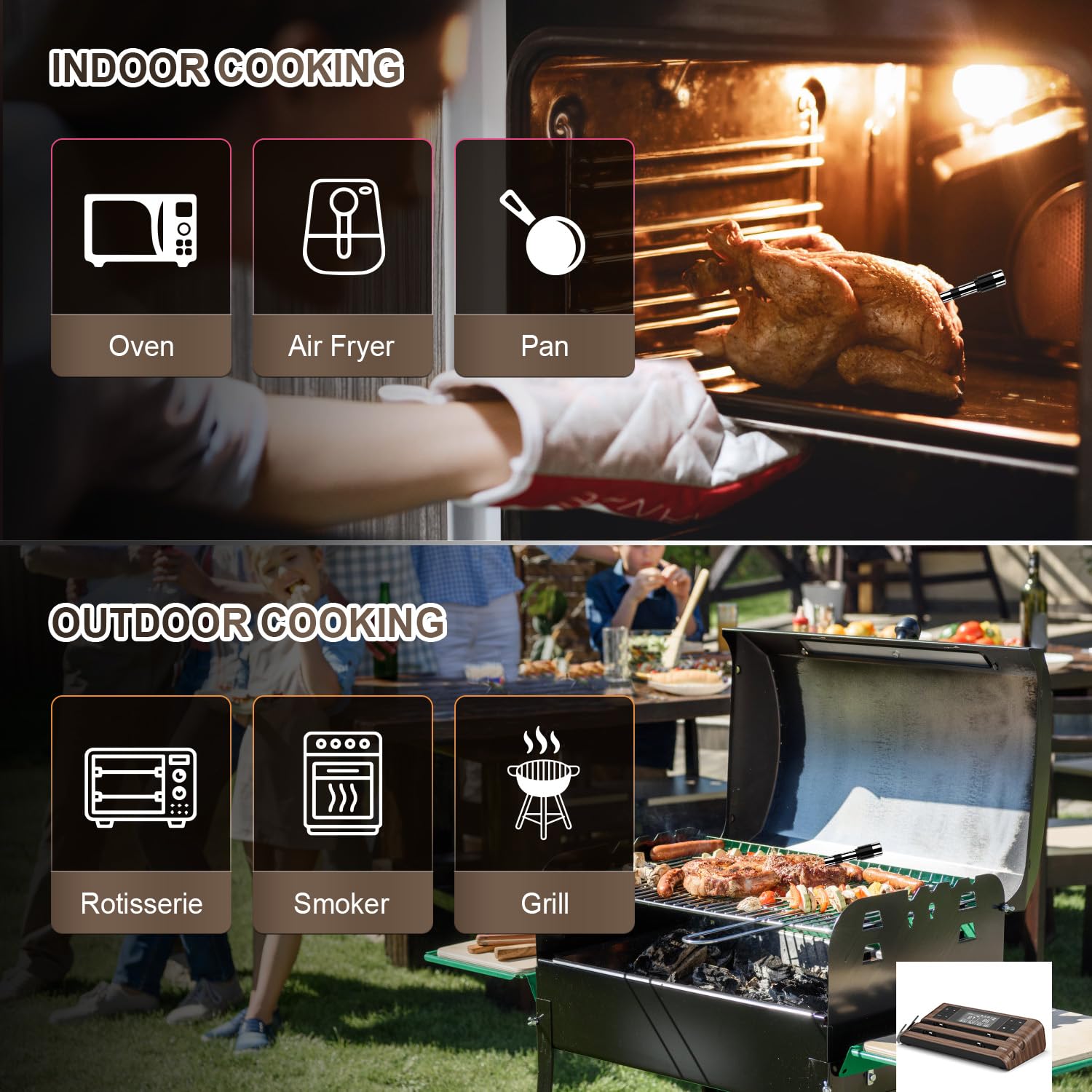 Wireless Smart Meat Thermometer with Dual-Sensor Probe, 500FT Remote Monitoring, Dedicated App, Real-Time Ambient and Food Temperature Tracking for Precise Cooking Control